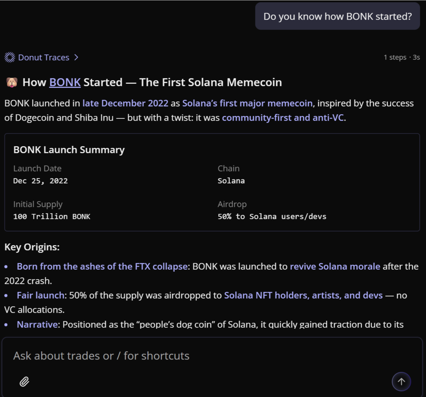 - Example Prompt: “Can you tell me about the history of BONK?”