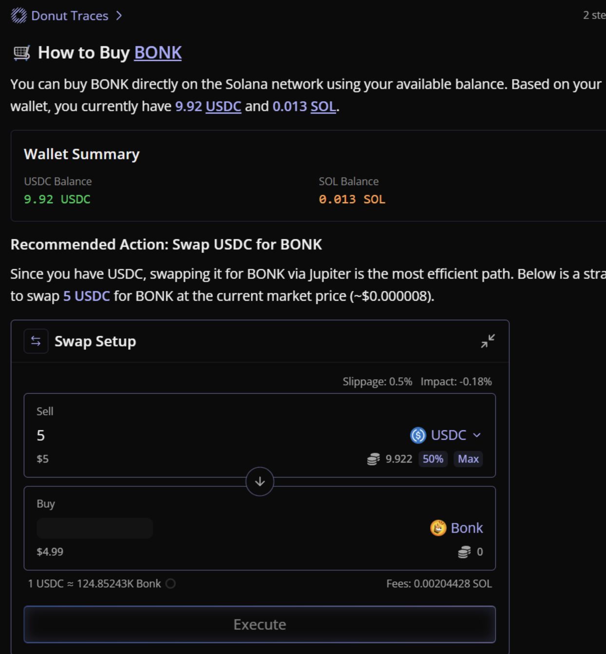 Donut will guide you step by step through the BONK purchase process, helping ensure the trade is executed correctly.